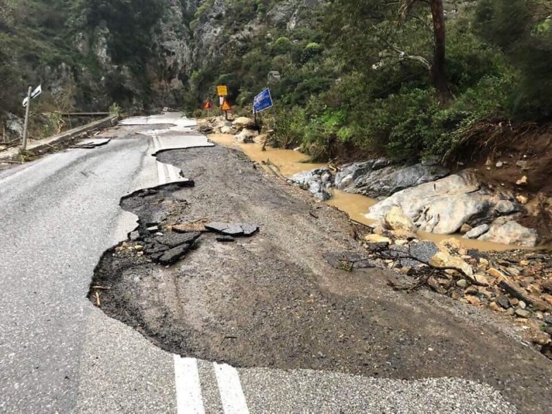 Κλειστός είναι ο δρόμος στο Κουρταλιώτικο φαράγγι μετά την ολοκληρωτική καταστροφή που υπέστη λόγω της ισχυρής κακοκαιρίας