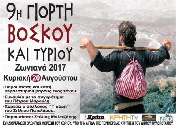 «Η κοινότητα των Ζωνιανών σε συνεργασία με όλους τους φορείς του χωριού υπό την αιγίδα του Δήμου Μυλοποτάμου και της Περιφέρειας Κρήτης, την αμέριστη συμπαράσταση του ομίλου της Κρήτη TV και την απλόχερη βοήθεια των σχολών μαγειρικής Kappa Studies του Κ. Καλαθάκη σας υπόσχονται μια υπέροχη βραδιά και μια ανεπανάληπτη εμπειρία» αναφέρει η πρόσκληση για τη Γιορτή του Βοσκού.