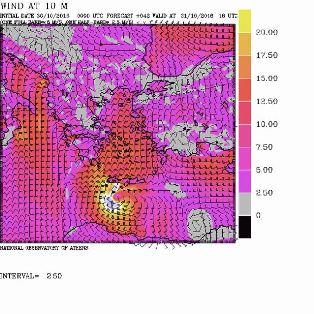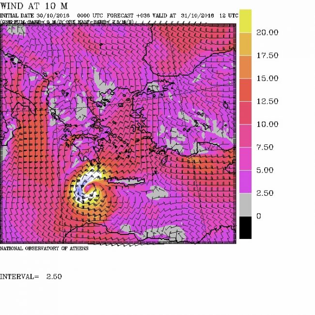 Σύμφωνα με τα προγνωστικά μοντέλα του Εθνικού Αστεροσκοπείου, ο κυκλώνας αυτός θα κινηθεί γρήγορα προς τα ανατολικά, και σύμφωνα με τα σημερινά στοιχεία αναμένεται να περάσει νότια της Κρήτης κατά τη διάρκεια της Δευτέρας 31/10, όπως δίνεται και στους 4 προγνωστικούς χάρτες