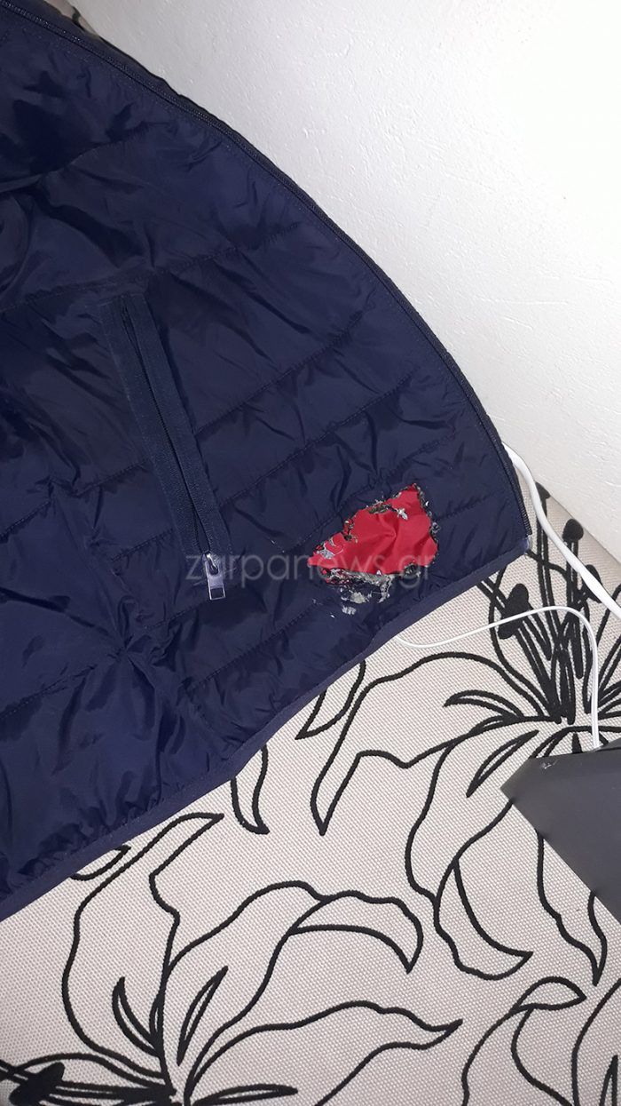 Ευτυχώς ο νεαρός δεν τραυματίστηκε και οι ζημιές περιορίστηκαν στο κινητό και το γιλέκο όπως φαίνεται στις σοκαριστικές φωτογραφίες που δημοσιεύει αποκλειστικά το zarpanews.