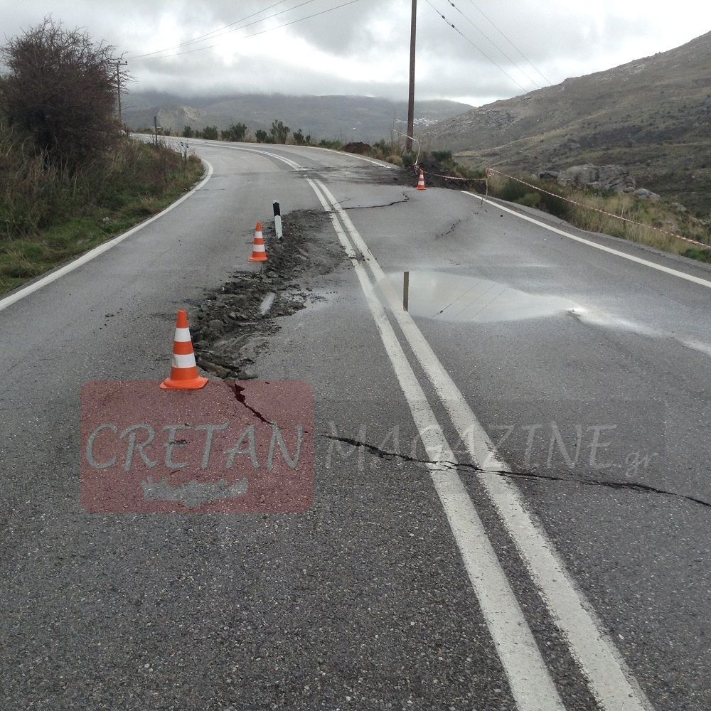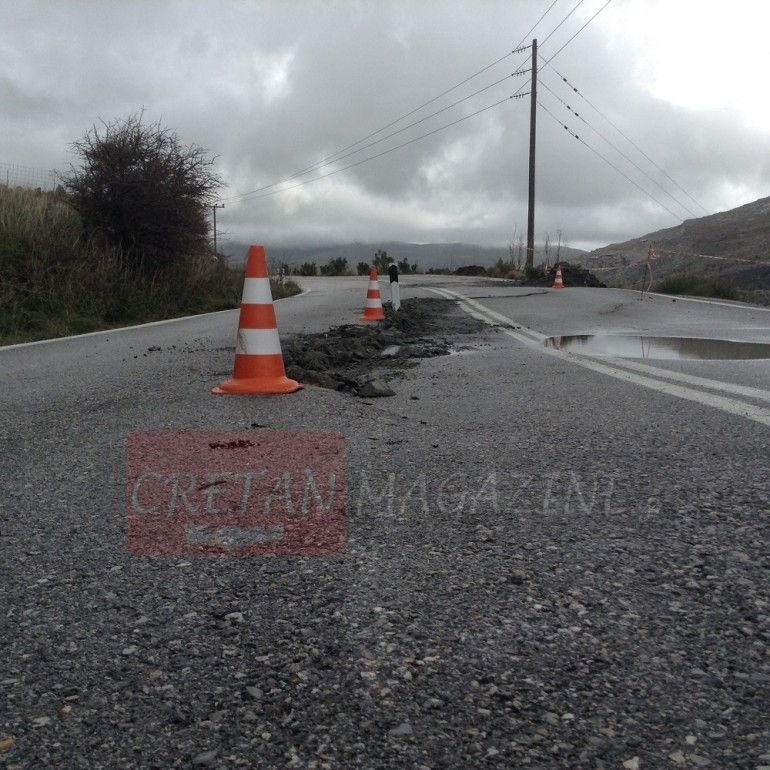 Στο πρώτο χιλιόμετρο Κρύας Βρύσης – Ρέθυμνο ο δρόμος από τις συνεχείς βροχοπτώσεις έχει υποστεί καθίζηση σε μήκος 50 μέτρων με αποτέλεσμα να είναι αδύνατων η κυκλοφορία των οχημάτων.
