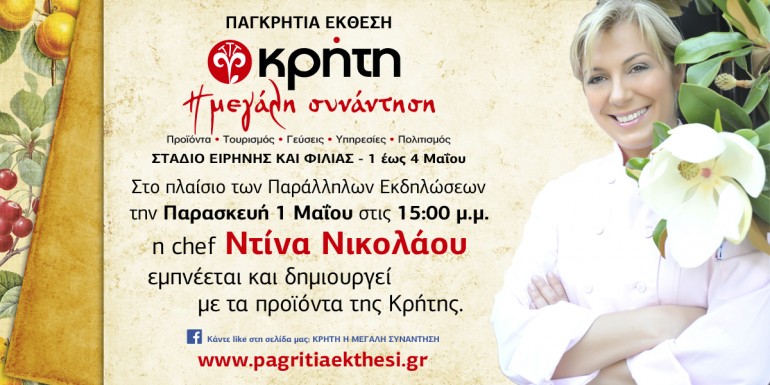 Η γνωστή σεφ, τηλεπαρουσιάστρια Ντίνα Νικολάου εµπνέεται και δηµιουργεί µε τα προϊόντα της Κρήτης.