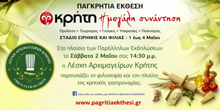 Κορυφαίοι δηµιουργοί της κρητικής κουζίνας έρχονται από την Κρήτη και παρουσιάζουν στο κοινό της Αττικής την φιλοσοφία και τον πλούτο της κρητικής γαστρονοµίας