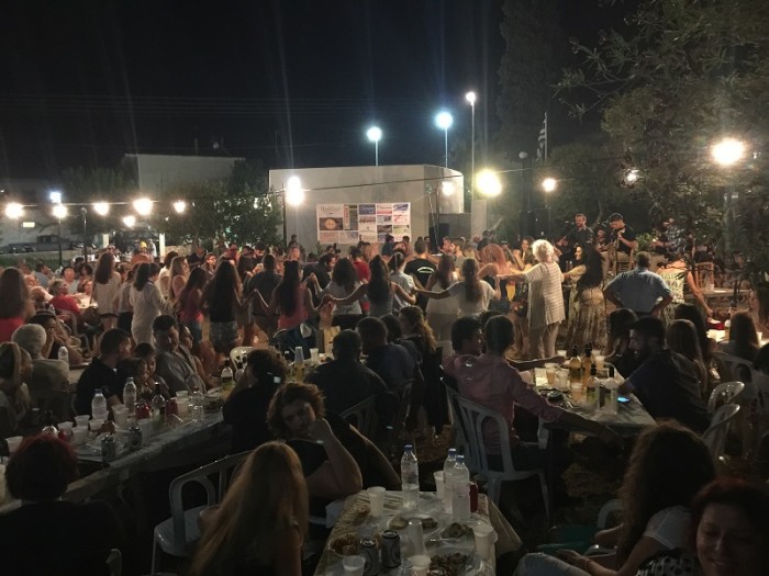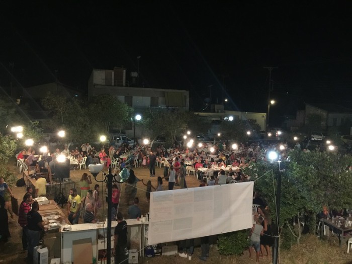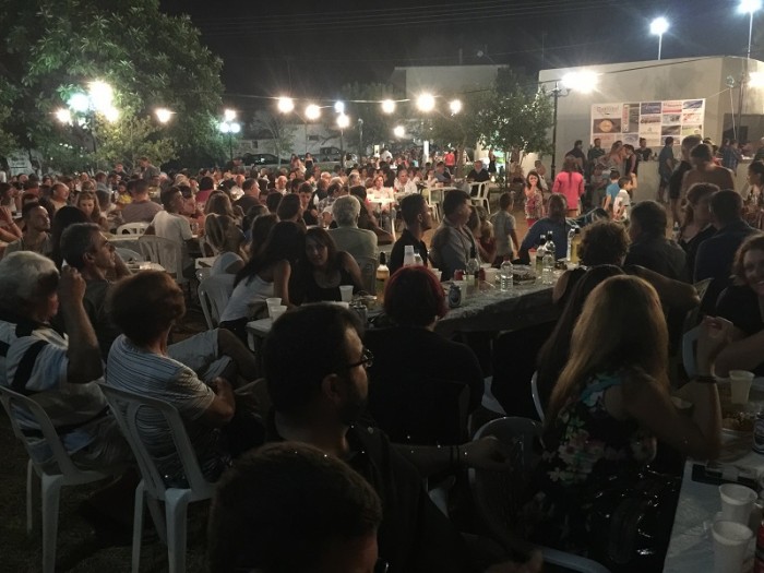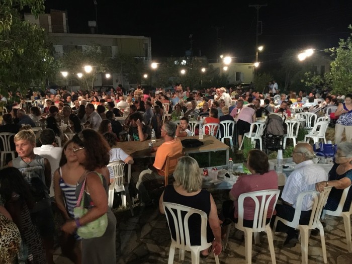 Από τις 19:30 το απόγευμα άρχισαν οι Πετροκεφαλιανοί να φέρνουν τα φαγητά που είχαν ετοιμάσει στο ιδικά διαμορφωμένο χώρο του ανοιχτού θεάτρου του χωριού.