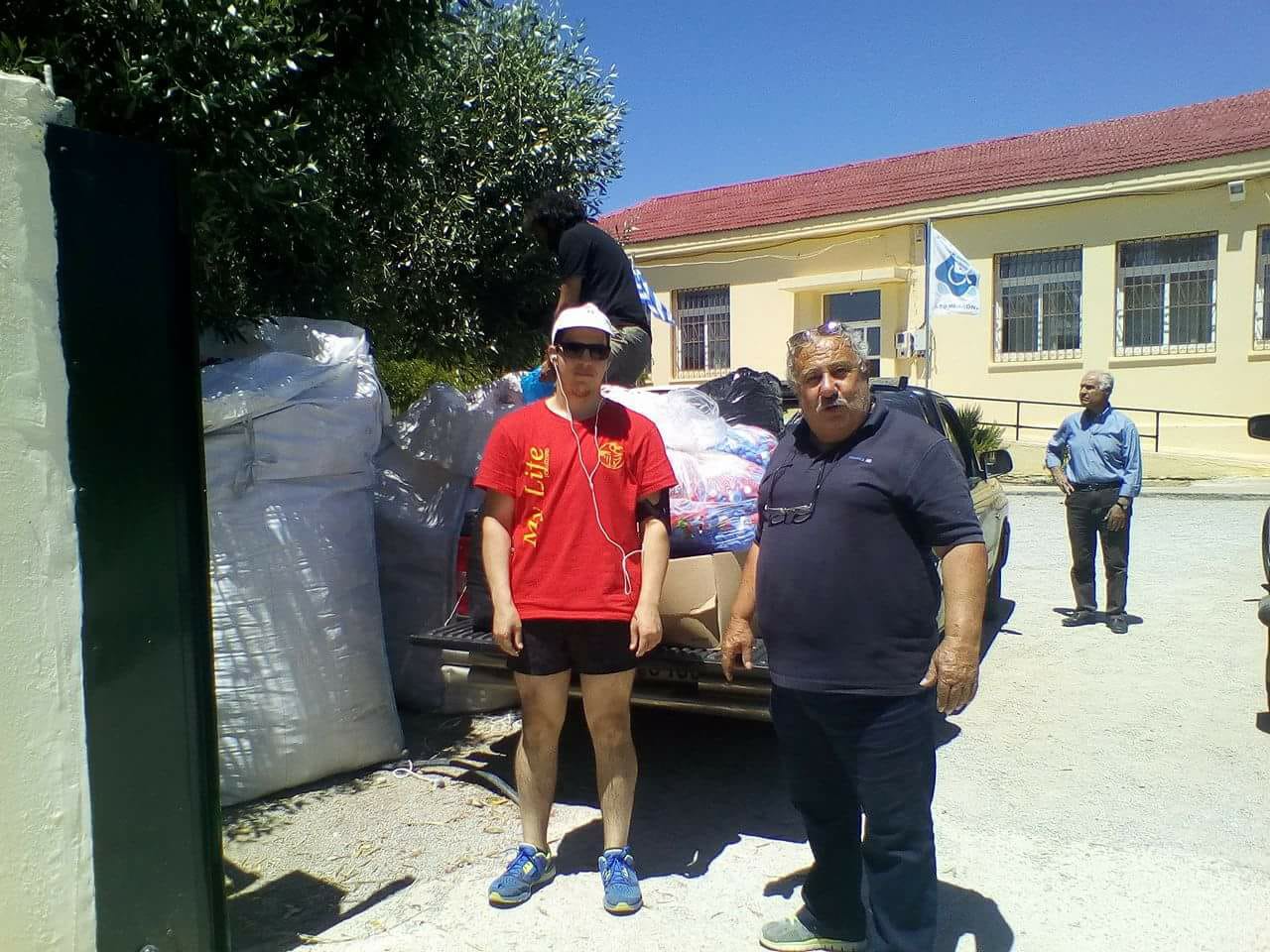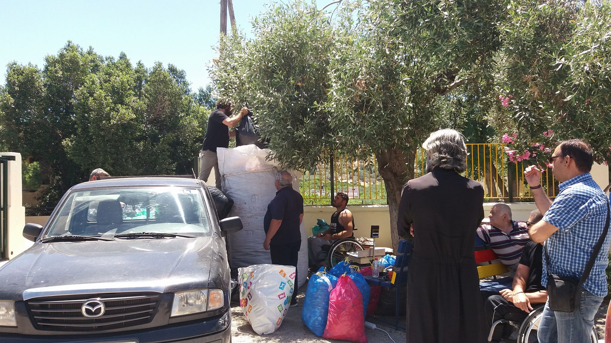 Επίσης την ενορία Χουστουλιανών και τον εκπρόσωπό της πατήρ Νικόλαο Τζαγκαράκη που με την ευκαιρία συγκέντρωσης των καπακιών από τα σχολεία της περιοχής, μας έφεραν και αυτοί τη δικιά τους ποσότητα που είχαν συγκεντρώσει.