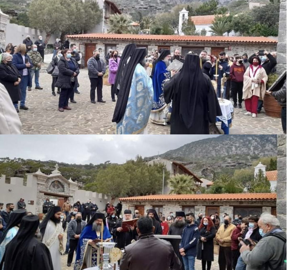 Πλήθος κόσμου, παρά το κρύο που επικρατούσε, παραβρέθηκε στον αγιασμό των υδάτων στην Μονή Κουδουμά, ανήμερα των Θεοφανίων.