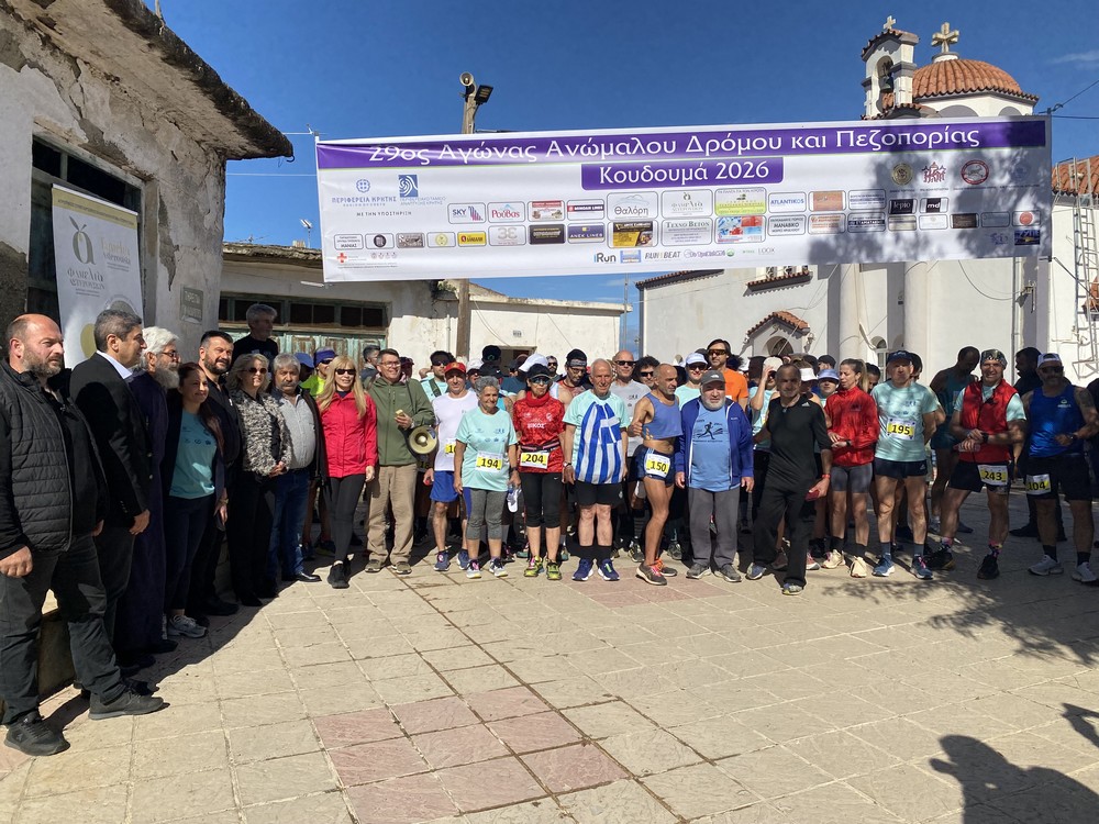 Με μεγάλη συμμετοχή δρομέων και πεζοπόρων, με την παρουσία πλήθους προσκυνητών, που χειροκρότησαν θερμά την προσπάθεια όλων των αθλητών και με την συνδρομή δεκάδων εθελοντών, πραγματοποιήθηκε, την Κυριακή των Βαΐων 5 Απριλίου 2026, ο 29ος Αγώνας Ανώμαλου Δρόμου και Πεζοπορίας Κουδουμά. Στην γενική κατάταξη, την πρώτη θέση στους άνδρες κατέλαβε ο Εμμανουήλ Σηφάκης, με χρόνο 1:43:02 και στις γυναίκες η Isabell Nollert, με χρόνο 2:26:38.