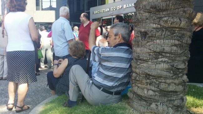 Μάλιστα δεν έλειψαν και τα περιστατικά λιποθυμιών. Συγκεκριμένα έξω από τράπεζα στην λεωφόρο 62 Μαρτύρων ένας ηλικιωμένος άνδρας δεν άντεξε την πίεση που περίμενε στην ουρά με αποτέλεσμα να καταρρεύσει.