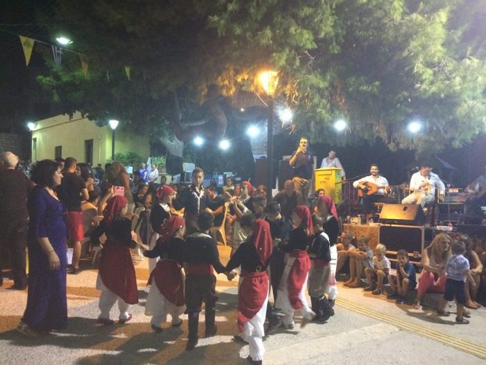 Στο κρητικό γλέντι στην πλατεία του χωριού διασκέδασαν μέχρι το πρωί, πάνω από 1500 άτομα που είχαν καθίσει όπου έβρισκαν, σε πεζούλια, σε αυλές σπιτιών, καφενεία ακόμα και όρθιοι, για να ακούσουν τον καταξιωμένο κρητικό λυράρη Νεκτάριο Σαμόλη με το συγκρότημά του.