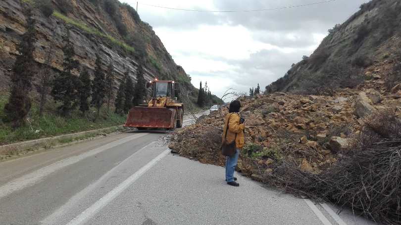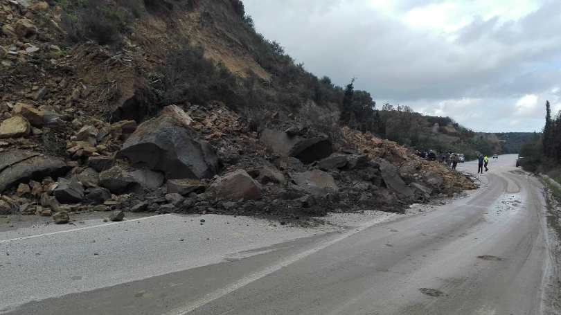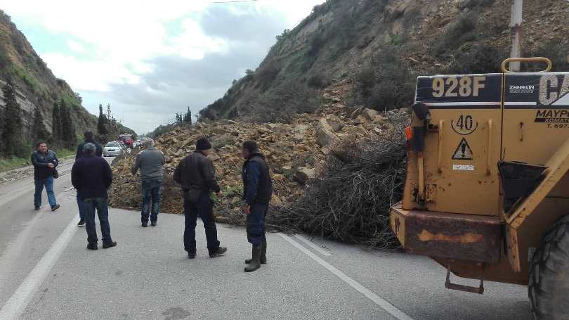 Απίστευτο! Μεγάλο μέρος από το βουνό αποκολλήθηκε και έπεσε στο δρόμο στο ύψος του Σταλού, λόγω της κακοκαιρίας