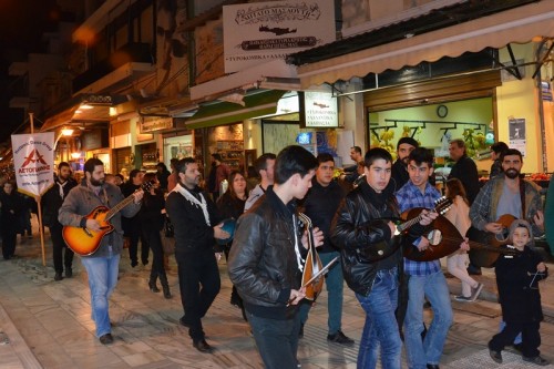 Μικροί και μεγάλοι μαθητές του Ομίλου, χορευτές και μουσικοί γέμισαν με μελωδίες, χορούς, παράδοση και ζωντάνια το κέντρο της πόλης. Όλα τα παραδοσιακά μουσικά όργανα της Κρήτης αρμονικά δεμένα μεταξύ τους στα χέρια άξιων μουσικών απέδιδαν με ποιότητα και σεβασμό στην παράδοση τις παλαιές παραδοσιακές μελωδίες με τις οποίες διάβαιναν οι παλιοί κανταδόροι της Κρήτης.