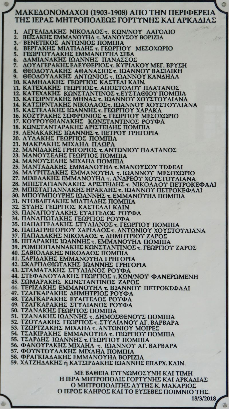 Στη συνέχεια, στον πρόναο του εν λόγω Ι. Ναού, ο Σεβ. αποκάλυψε πλάκα με τα ονόματα των παραπάνω Μακεδονομάχων, σε ένδειξη ευγνωμοσύνης και τιμής προς αυτούς, εκ μέρους της Τοπικής Εκκλησίας.
