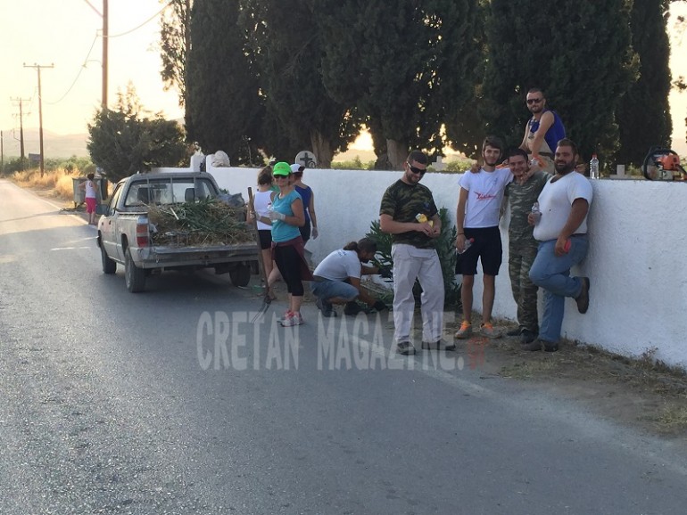Η προσπάθεια άρχισε από την Κυριακή αρχίζοντας από τα σοκάκια του χωριού και μετά από τέσσερις μέρες σκληρής δουλειάς έχουν φτάσει στο τέλος, το νεκροταφείο του χωριού.