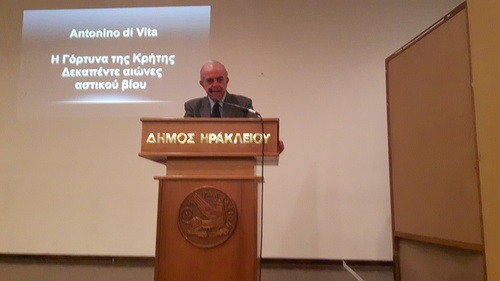 Την παρουσίαση προλόγισε ο Δήμαρχος Ηρακλείου κ. Βασίλης Λαμπρινός, ο οποίος εξήρε το έργο όσο και την προσωπικότητα του Antonino Di Vita: «Η Ελλάδα οφείλει παντοτινή ευγνωμοσύνη στην παρουσία, στις έρευνες, και στο ανασκαφικό έργο των ξένων Αρχαιολογικών Σχολών, που, γνωρίζοντας σε βάθος τα κείμενα και την Ιστορία ενός από τους μεγαλύτερους πολιτισμούς της ανθρωπότητας, κατόρθωσαν, σε χαλεπούς καιρούς, με ελάχιστα τεχνικά μέσα, να αναδείξουν και να προσφέρουν στον σύγχρονο κόσμο, τους χώρους, τα μνημεία, και τα έργα τέχνης, της μακράς πορείας του Ελληνικού Πολιτισμού.