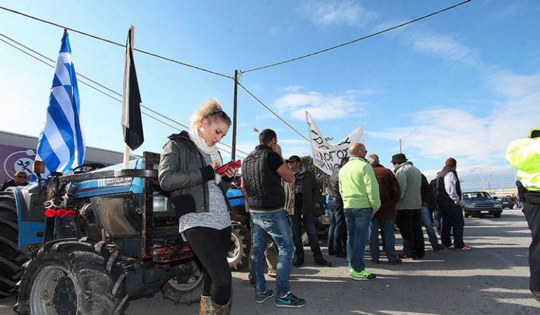 Αυτή την φορά, στο μπλόκο της Κορίνθου, τα βλέμματα μαγνήτισε μία γυναίκα. Η Μαρία Πετρούλα Σκλία, η νεαρή, ξανθιά αγρότισσα εθεάθη πάνω σε ένα από τα συγκεντρωμένα τρακτέρ και ο φακός δεν θα μπορούσε να μην την απαθανατίσει.