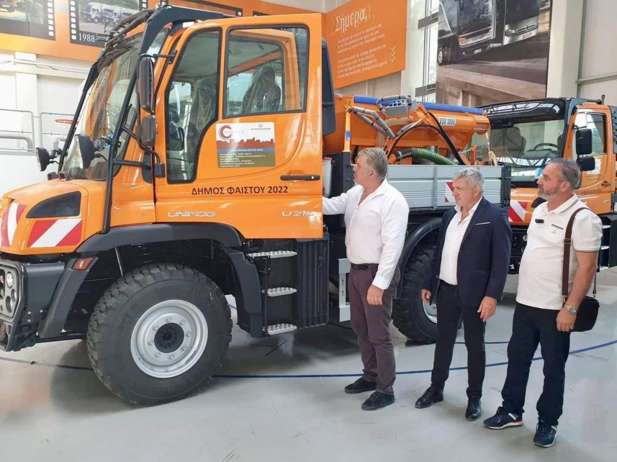 Ο Δήμαρχος Φαιστού κ. Γρηγόρης Νικολιδάκης , μαζί με τον αρμόδιο Αντιδήμαρχο κ. Γιάννη Φασομυτάκη και τον πρόεδρο του Δημοτικού Συμβουλίου κ. Μανόλη Ορφανουδάκη βρέθηκαν στις εγκαταστάσεις της αναδόχου εταιρίας στην Αθήνα προκειμένου να εποπτευόσουν το μηχάνημα.