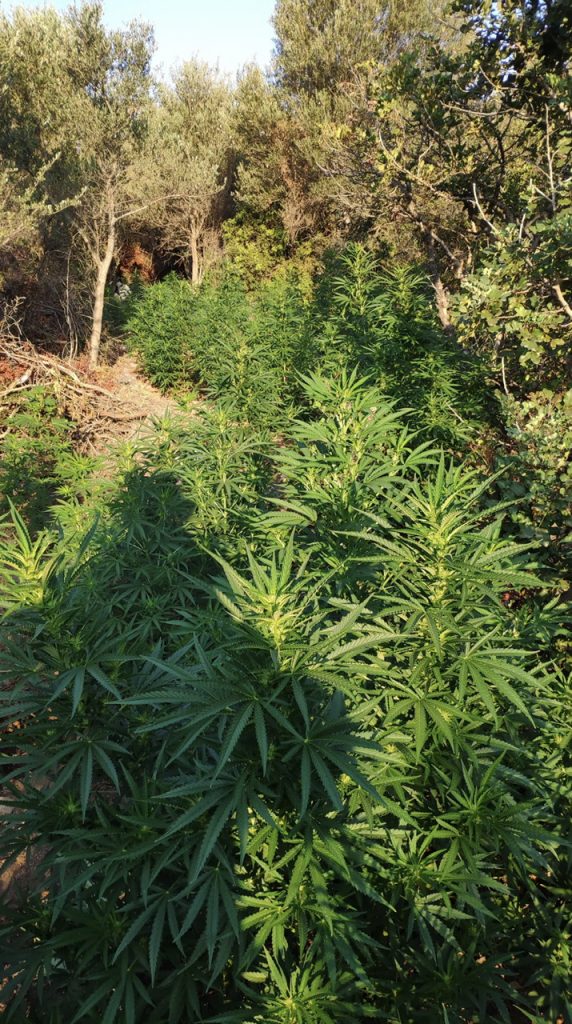 Κατά τη διάρκεια της επιχείρησης εντοπίστηκε μία φυτεία κάνναβης όπου σε 4 ειδικά διαμορφωμένους χώρους, καλλιεργούνταν επιμελώς 324 δενδρύλλια κάνναβης ευρισκόμενα στο στάδιο της ανάπτυξης τα οποία εκριζώθηκαν και κατασχέθηκαν.