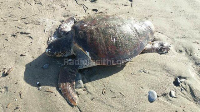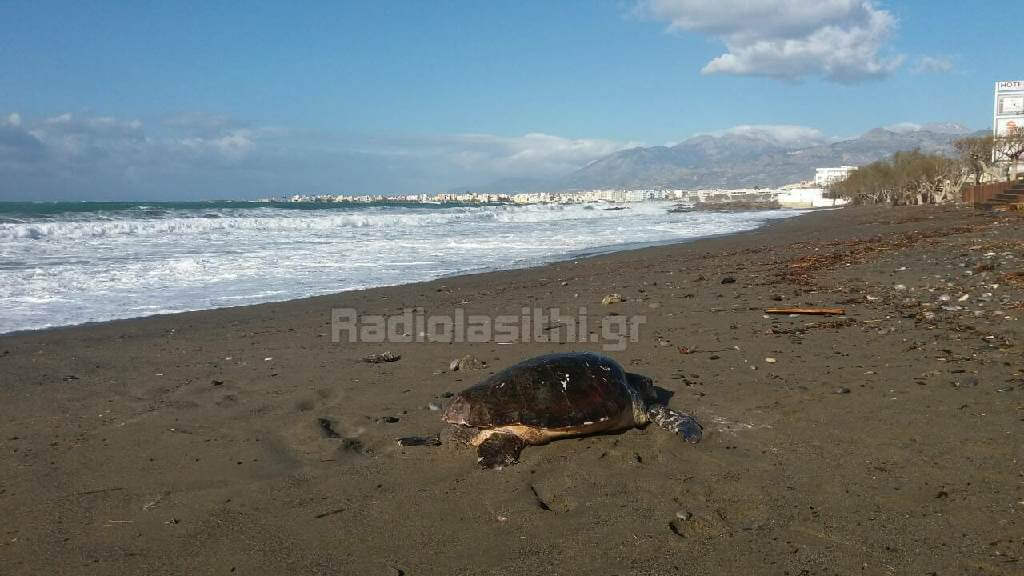 Μια νεκρή χελώνα εντοπίστηκε το πρωί της Κυριακής στην παραλία του Αγίου Ανδρέα στην Ιεράπετρα, μπροστά από ξενοδοχείο να έχει ξεβραστεί από τα κύματα.