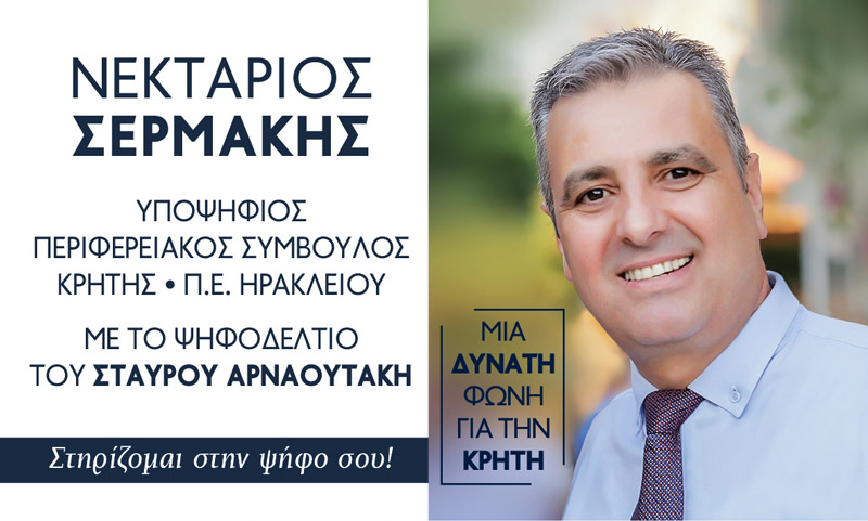 Στις εκλογές της 19ης Μαΐου θα είµαι υποψήφιος Περιφερειακός Σύµβουλος και καλώ όλους εσάς, τους πολίτες και φίλους μου, να με στηρίξετε, για να σας εκπροσωπήσω στο νέο Περιφερειακό Συµβούλιο Κρήτης.