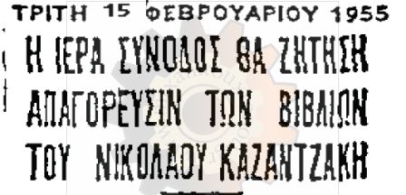 Τα έργα του «ο Τελευταίος Πειρασμός», «ο Χριστός ξανασταυρώνεται» και «Καπετάν Μιχάλης», έγιναν αφορμή ώστε η ιερά σύνοδος με έγγραφό της, να ζητήσει από την κυβέρνηση την απαγόρευσή τους.