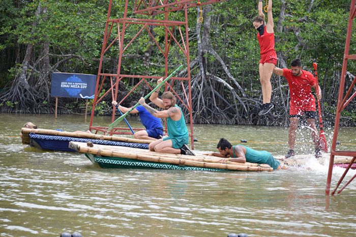 Το σημερινό αγώνισμα ονομάζεται «RIVER SURF BOAT». Δύο παίκτες από κάθε ομάδα θα ανέβουν πάνω σε μια σχεδία. Στην αρχή θα κωπηλατήσουν με τα χέρια μέχρι να φτάσουν στην πρώτη ξύλινη γέφυρα από την οποία θα πρέπει να απελευθερώσουν ένα κουπί.