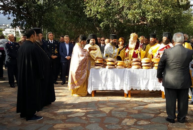 Το πρωί εψάλει Θεία Λειτουργία στην εορτάζουσα πόλη χοροστατούντος του Μητροπολίτου κ.κ. Κυρίλλου, παρουσία του Περιφερειάρχη Σταύρου Αρναουτάκη, εκπροσώπων Αρχών, Ενόπλων Δυνάμεων και Σωμάτων Ασφαλείας, εκπροσώπων της Αυτοδιοίκησης, φορέων και πλήθους πιστών ενώ ακολούθησε λιτάνευση της εικόνας του Αγίου.