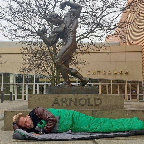 Ο διάσημος ηθοποιός Άρνολντ Σβαρτζενέγκερ δημοσίευσε μια φωτογραφία του να κοιμάται στο δρόμο κάτω από το διάσημο χάλκινο άγαλμα του, και δυστυχώς έγραψε “πώς έχουν αλλάξει οι καιροί”…