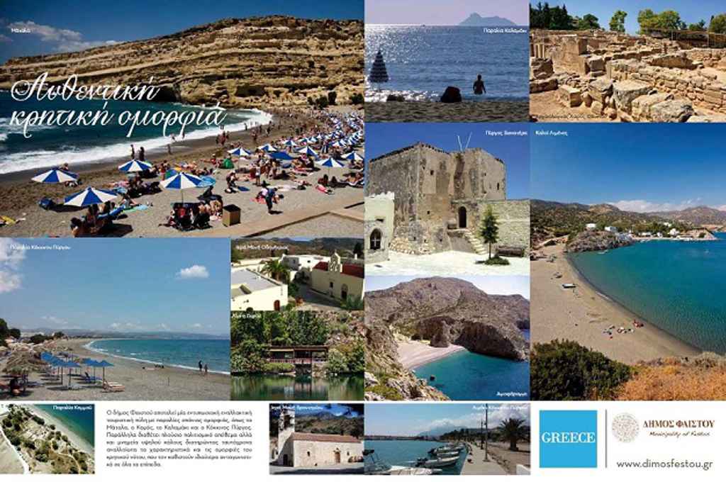 Ο Δήμος Φαιστού στην συνεχή προσπάθεια που καταβάλλει, για την προβολή των αξιοθέατων του Δήμου σε πανελλαδικό επίπεδο και όχι μόνο, συμμετείχε στην ιδιαιτέρως ξεχωριστή έκδοση του περιοδικού TRAVELBOOK της εφημερίδας ΕΘΝΟΣ, το οποίο είναι ένας πλήρης ταξιδιωτικός οδηγός αφιερωμένος στην Κρήτη, με τις καλύτερες παραλίες, τα πιο σπουδαία ιστορικά και αρχαιολογικά μνημεία, τα ωραιότερα τοπία, τις μεγάλες πόλεις και τους πιο γραφικούς οικισμούς της ενδοχώρας.