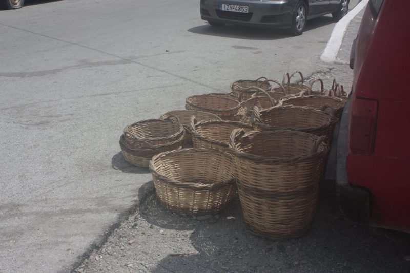 Ένα καλάθι μπορεί να το πλέξει από μισή ώρα, αλλά να χρειαστεί να βάλει τη μεγάλη τέχνη, μπορεί να πάρει και δυο ώρες! Φτιάχνει τις κατασκευές του από βρούλο στα μαδαράκια για τυριά, και στα καλάθια πανέρια κλπ, χρησιμοποιεί, εκτός του καλάμι που είναι το βασικό, άγρια ελιά, και λυγαριά.