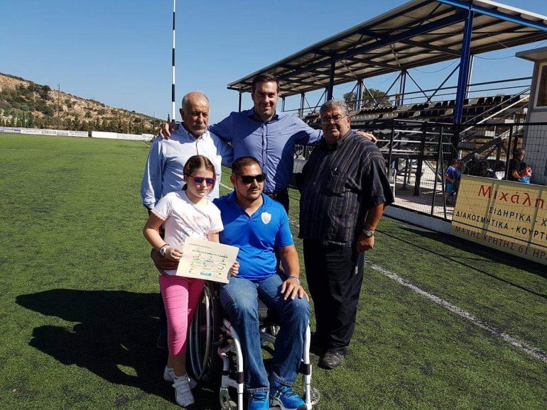 Στο γήπεδο του Κρουσώνα βρέθηκε ο Χρυσός Παραολυμπιονίκης Στεφανουδάκης Μανώλης για τον εορτασμό της ημέρας αθλητισμού στα σχολεία.