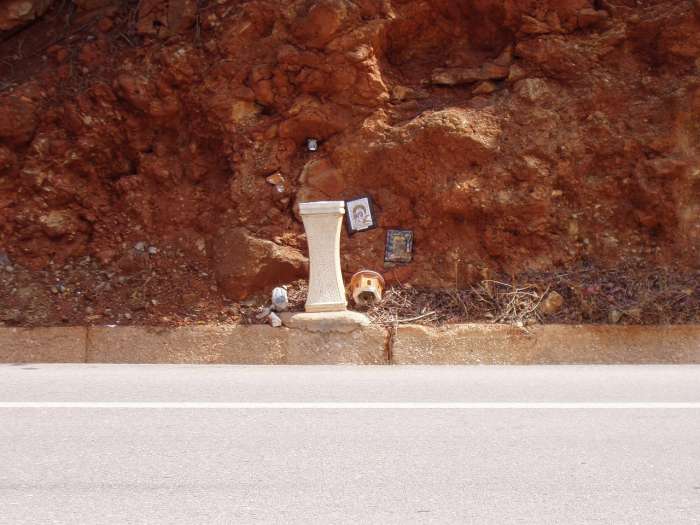 Πολλά μου έκαναν εντύπωση. Είδα ένα εκκλησάκι που το έφτιαξε ένας Ιταλός για ένα φίλο του που σκοτώθηκε. Είδα ένα πολύ ωραίο εκκλησάκι που έφτιαξε ένας Αλβανός για ένα φίλο του. Είδα ένα εκκλησάκι που δεν είναι από τροχαίο, είναι πάνω στο δρόμο, κάποτε υπήρχε εκεί θάλασσα και κάποιος είχε πνιγεί. Μετά λοιπόν που έφτιαξαν τον δρόμο αυτό το εκκλησάκι έμεινε και είναι στο σημείο το ίδιο που τώρα περνούν τα αυτοκίνητα, εκεί κάποιος έχει πνιγεί. Υπάρχει ένα άλλο σημείο που είναι μια κοπελιά Γερμανίδα με ένα εκκλησάκι πολύ όμορφο και λιτό το οποίο η φύση είναι λες και το αγκαλιάζει με ένα περίεργο κισσό που δεν ήταν τότε φυτεμένος αλλά το έβγαλε η φύση από μόνη της.