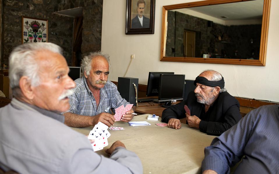 Ο ορεσίβιος γέροντας με το παχύ μουστάκι ξέρει να μετρά τις λέξεις. Τι κι αν δεν τελείωσε το δημοτικό, στα σοκάκια των Λιβαδίων μπορεί με τις κουβέντες του να πείθει.