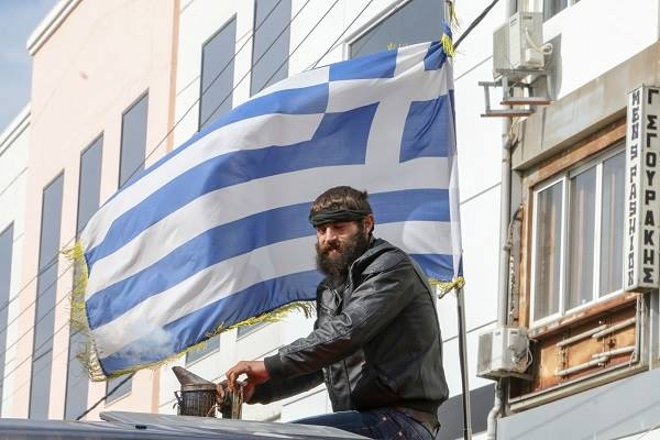 Πάνω στο τρακτέρ με φόντο την ελληνική σημαία και με το κρητικό σαρίκι στο κεφάλι του, ο Στάθης αιχμαλώτισε για ακόμη μία φορά τα φλας των φωτογράφων.