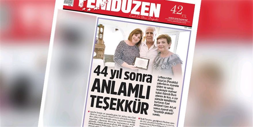 Δύο Ελληνοκύπριες αδελφές, 44 χρόνια μετά τη τουρκική εισβολή του 1974, κατάφεραν να εντοπίσουν τον Τουρκοκύπριο αξιωματικό, ο οποίος τους είχε σώσει τη ζωή, σε μια περίοδο που οι Τούρκοι στρατιώτες έσφαζαν και βίαζαν στα χώρια που καταλάμβαναν