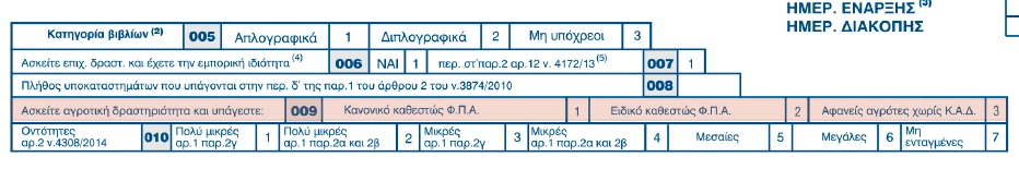 ► Στις περιπτώσεις που στο έντυπο Ε3 συμπληρώνεται υποχρεωτικά από λογιστή – φοροτεχνικό (για όλα τα νομικά πρόσωπα ή νομικές οντότητες ανεξαρτήτως ορίων ακαθαρίστων εσόδων και ατομικές επιχειρήσεις με διπλογραφικά βιβλία) ή υπάρχει υποχρέωση συμπλήρωσης από λογιστή – φοροτεχνικό βάσει των εκάστοτε ισχυόντων ορίων ακαθαρίστων εσόδων (για τις ατομικές επιχειρήσεις με απλογραφικά βιβλία) σύμφωνα με το άρθρο 38 του ν.2873/2000, όπως ισχύει, και την ΠΟΛ.1008/19.1.2011 απόφαση Υπουργού Οικονομικών, δηλαδή 100.000 ευρώ για εμπορική ή μικτή δραστηριότητα και 50.000 ευρώ για παροχή υπηρεσιών, καθώς και σε κάθε περίπτωση που υπάρχει ένδειξη ότι συμπληρώνεται από λογιστή – φοροτεχνικό, το έντυπο αυτό υποβάλλεται αποκλειστικά με τους κωδικούς του λογιστή – φοροτεχνικού και όχι με τους κωδικούς του επιχειρηματία (φυσικού ή νομικού προσώπου).
