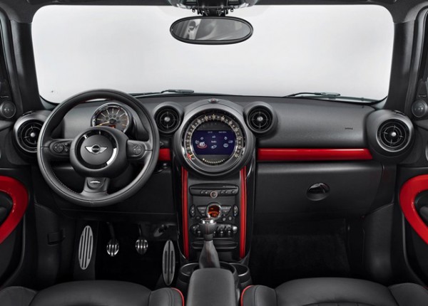 Το Paceman JCW, είναι αναμφίβολα ένα αυτοκίνητο που τραβά τα βλέμματα όλων. Μαύρα νέα μεταλλικά στοιχεία κάνουν την εμφάνισή τους στο φουτουριστικό αλλά κατά τα άλλα γνώριμο από τη Mini, εσωτερικό του.