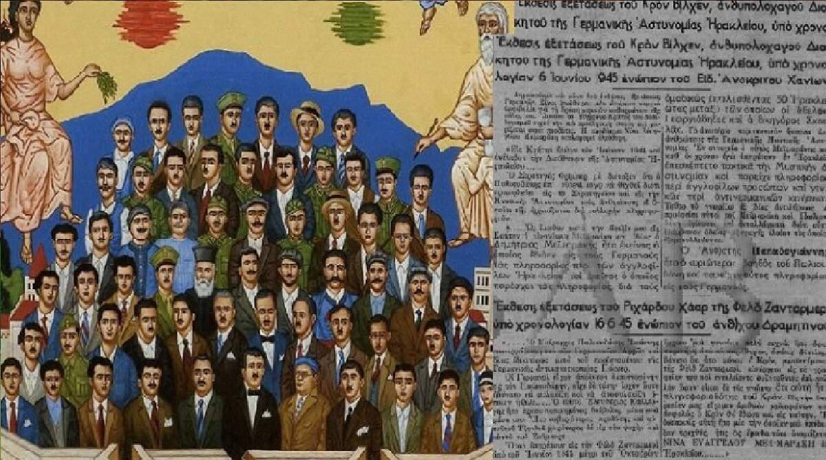 Ένας πίνακας που απεικονίζει τους 62 Μάρτυρες, τους επιφανείς Ηρακλειώτες που εκτελέστηκαν τον Ιούνιο του 1942 ως αντίποινα στο σαμποτάζ στο Αεροδρόμιο Ηρακλείου, κοσμεί την Αίθουσα Παπανδρέου του δήμου Ηρακλείου, ως ένδειξη τιμής και μνήμης