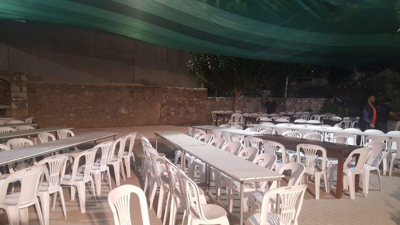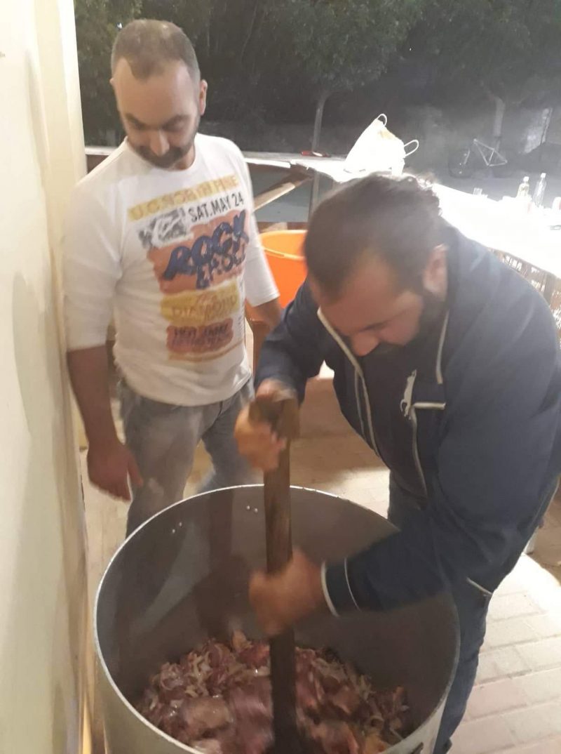 Όλα είναι έτοιμα για το γλέντι το μεσημέρι του Σαββατου μετά την περιφορά της εικόνας του Πολιούχου Αγίου Γεωργίου στον προαύλιο χώρο του Πολιτιστικού Συλλόγου.