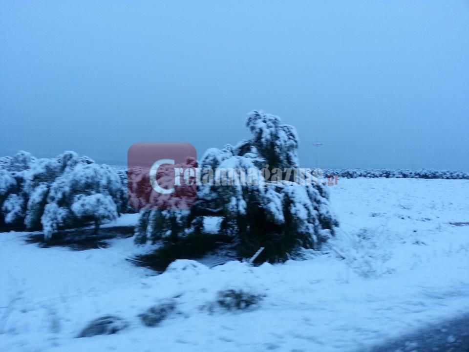 Η ώρα είναι 8:00 το πρωί και συνεχίζει να ρίχνει χιόνι σε όλο τον κάμπο της Μεσαράς.