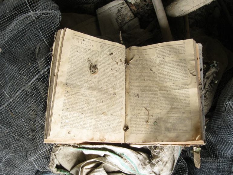 Βιβλία του ’32 πεταμένα στα σκουπίδια σε χάλασμα ερειπωμένου σπιτιού… Σκέψεις ανθρώπων σπαρμένες με λέξεις, που δεν καρποφόρησαν…