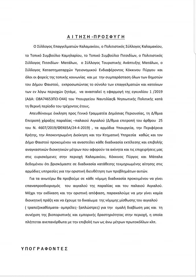Μετά από σειρά επαφών του δημάρχου Φαιστού κυρίου Αρμουτάκη με τα αρμόδια Υπουργεία δόθηκε προφορική διαβεβαίωση για το πάγωμα προστίμων και παράταση μέχρι το τέλος της τουριστικής περιόδου.