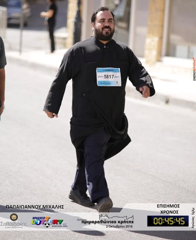 Τρεις ιερείς έτρεξαν φορώντας τα ράσα τους την Κυριακή 2 Οκτωβρίου στον 2ο Ημιμαραθώνιο Κρήτης που έγινε στο Αρκαλοχώρι Ηρακλείου