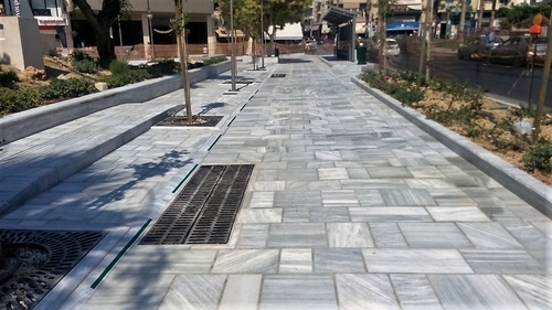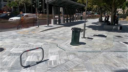 Οι παρεμβάσεις αφορούσαν κυρίως στην εξομάλυνση της υψομετρικής διαφοράς ανάμεσα στα επίπεδα της πλατείας και στην τοποθέτηση αντιολισθητικής ταινίας κατά μήκος του αναβαθμού η οποία, σε συνδυασμό με τη χρωματική διαφοροποίηση του υλικού, επιτρέπει την ασφαλέστερη διάβαση των πεζών.