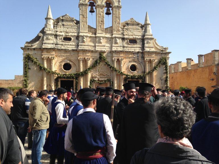 Τον Πρόεδρο της Δημοκρατίας υποδέχτηκαν στην είσοδο της ιστορικής Μονής ο εκπρόσωπος της Κυβέρνησης Ανδρέας Ξανθός, ο Περιφερειάρχης Κρήτης Σταύρος Αρναουτάκης, ο Δήμαρχος Ρεθύμνου Γιώργος Μαρινάκης, η Αντιπεριφερειάρχης Ρεθύμνου Μαρία Λιονή.