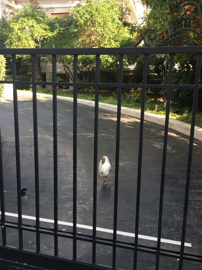 Η κότα έκοβε βόλτες, την ώρα που έφτανε ο Κυριάκος Μητσοτάκης και δεν πέρασε απαρατήρητη από τον πρόεδρο της Νέας Δημοκρατίας.