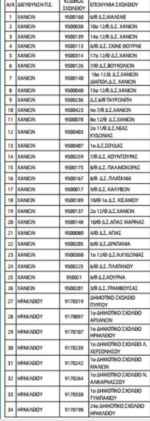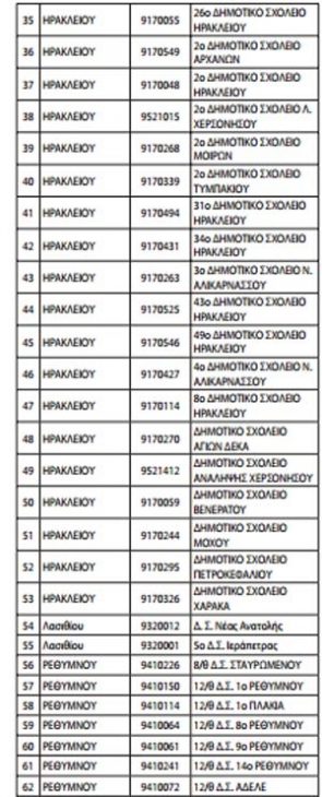 Συγκεκριμένα και σύμφωνα με το ΦΕΚ που δημοσιεύτηκε στις 11 Οκτωβρίου, 27 σχολεία του Ηρακλείου, 7 του Ρεθύμνου, 2 του Λασιθίου και 26 των Χανίων θα δεχθούν τ0υς μικρούς μαθητές. τα πρώτα 27 τμήματα θα λειτουργήσουν άμεσα, σύμφωνα με σχετική απόφαση του Υπουργού Παιδείας.