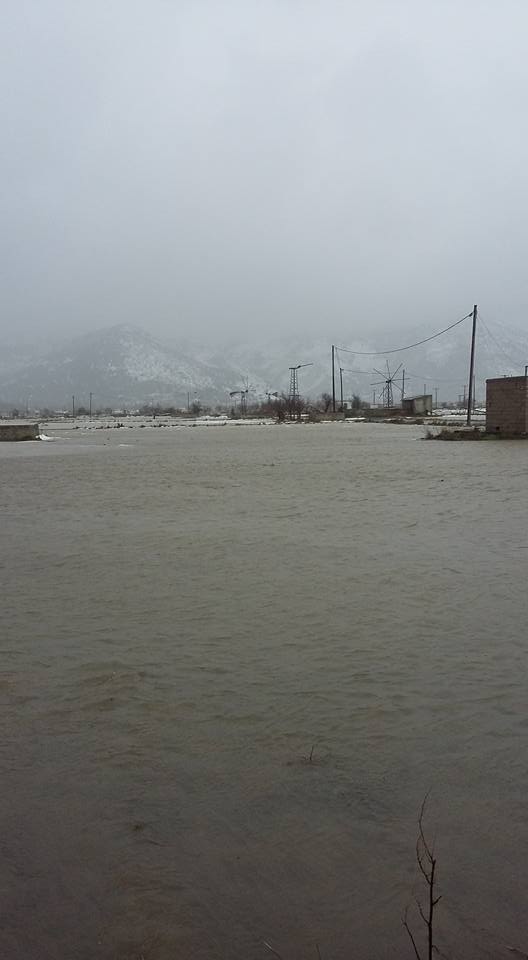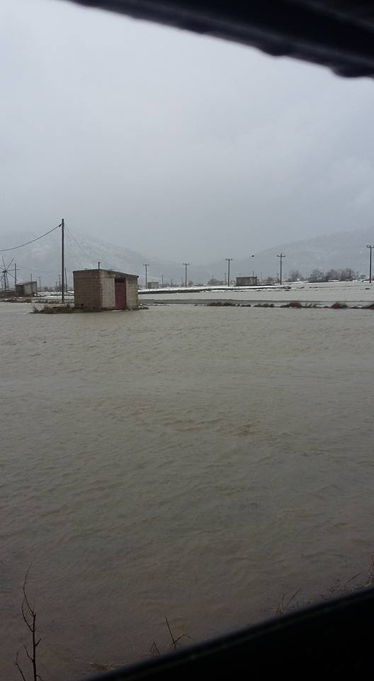Oι συνεχείς βροχές και τα χιόνια που λιώνουν έχουν υπερχειλίσει χείμαρρους και ποτάμια με αποτέλεσμα τα ορμητικά νερά να εισβάλλουν σε σπίτια και καλλιέργειες προκαλώντας ζημιές, δημιουργώντας μια τεράστια μια τεράστια απροσπέλαστη λίμνη.
