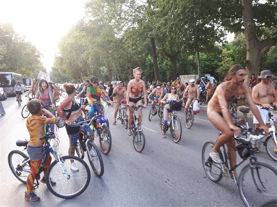 Για την δημιουργία ασφαλούς δικτύου ποδηλατοδρόμων, το περιβάλλον και τη βιώσιμη κινητικότητα διαδήλωσαν οι ποδηλάτες που πήραν μέρος στην 11η Διεθνή Γυμνή Ποδηλατοδρομία.
