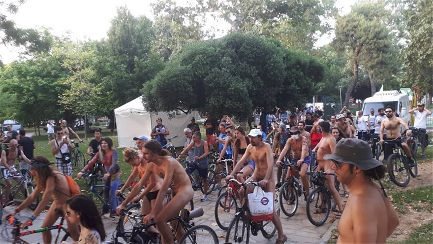 Οι ποδηλάτες, με ρούχα ή χωρίς, συγκεντρώθηκαν στο πάρκο της ΧΑΝΘ, όπου με bodypainting πέρασαν τα μηνύματα τους