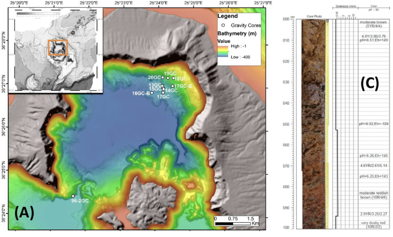 Στην έρευνα, που δημοσιεύθηκε στο επιστημονικό περιοδικό «Frontiers in Microbiology», παρουσιάζονται για πρώτη φορά στοιχεία για τους μικροοργανισμούς που ζουν στα βαθύτερα στρώματα κάτω από τον πυθμένα του ηφαιστειακού συμπλέγματος Σαντορίνης-Κολούμπου. Ο Κολούμπος είναι ένα υποθαλάσσιο ενεργό ηφαίστειο σε απόσταση εξίμισι χιλιομέτρων βορειοανατολικά της Σαντορίνης.